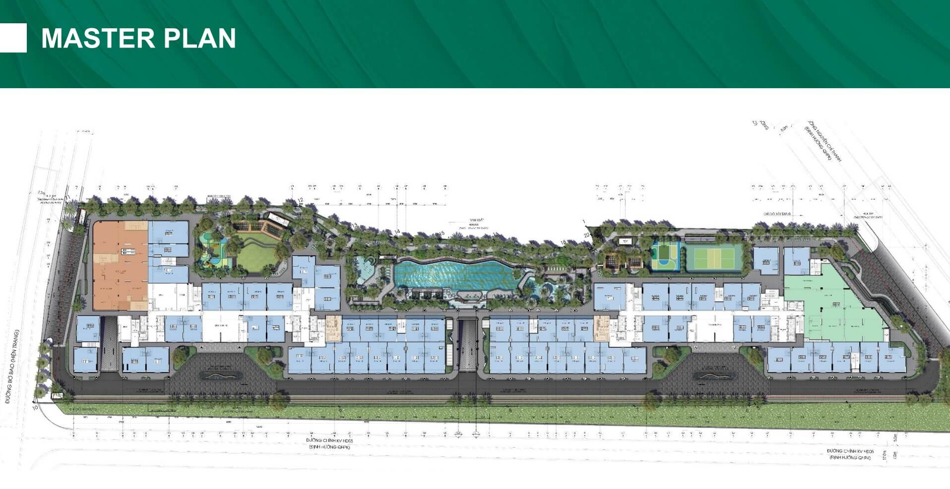 Dự án dành hơn 4.500 m² mảng xanh, được quy hoạch thành công viên nội khu, lối dạo bộ, vườn cảnh quan và các mảng cây xanh kết hợp mặt nước, giúp cải thiện vi khí hậu và tạo nên môi trường sống trong lành, gần gũi với thiên nhiên. Đây là yếu tố quan trọng nâng cao chất lượng cuộc sống và góp phần kiến tạo cộng đồng cư dân văn minh, chan hòa và an toàn.