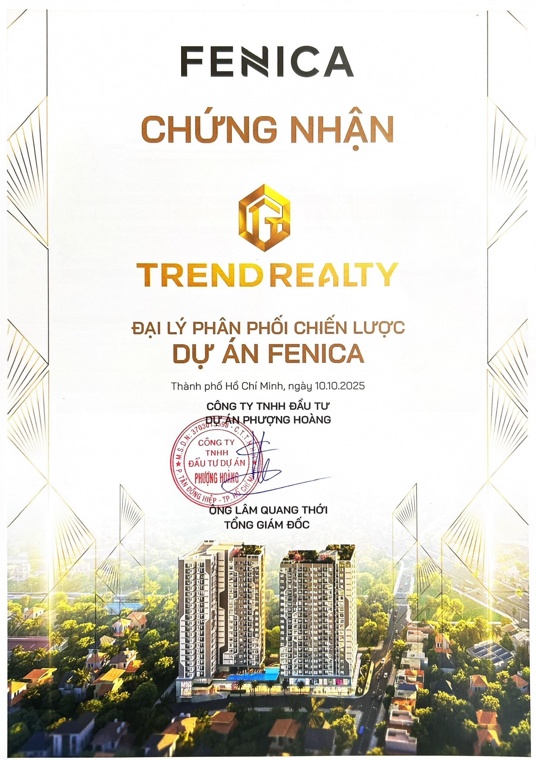 Theo đó, Trend Realty trở thành đại lý F1 phân phối chính thức dự án căn hộ cao cấp FENICA Bình Dương.
