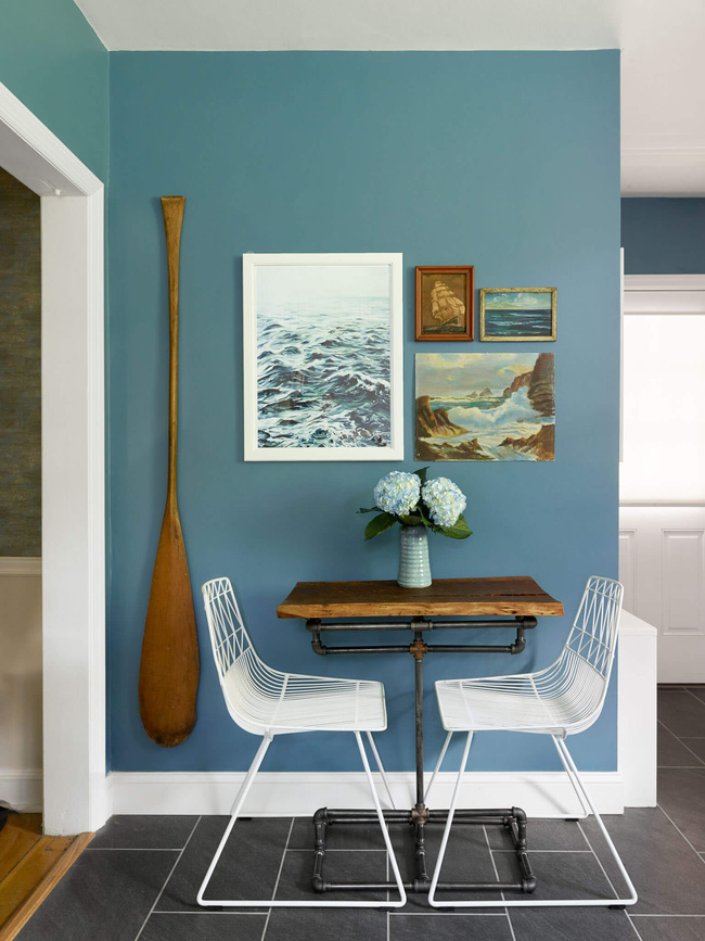 - Chiếc mái chèo cũ và những bức tranh biển hòa hợp tuyệt đối với phog cách vintage của ngôi nhà này.